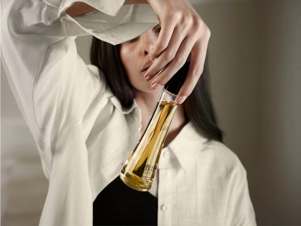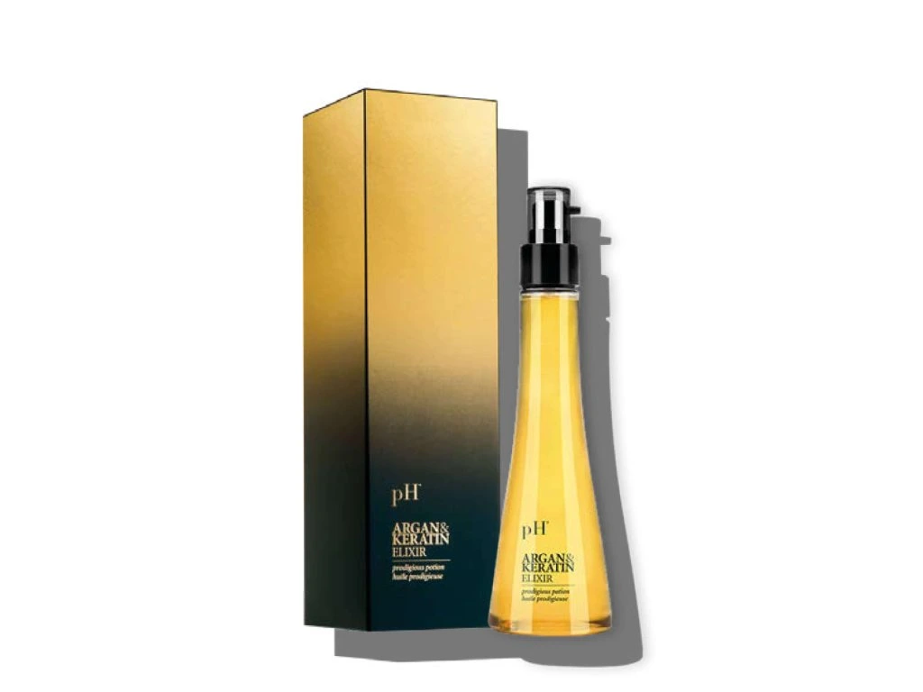 ARGAN & KERATIN ELIXIR od pH Laboratories je luxusní olejová péče bez oplachování, která okamžitě zkrášlí i ty nejvíce unavené a poškozené vlasy. Tento elixír na bázi arganového oleje a hydrolyzovaného keratinu vyživuje vlasy do hloubky, uhlazuje jejich strukturu, zabraňuje krepatění a dodává jim neodolatelný lesk. Chrání vlasy před vnějšími vlivy, usnadňuje rozčesávání a styling a zároveň nezatěžuje ani jemné vlasy. Je vhodný pro suché, lámavé i barvené vlasy, které potřebují okamžitou regeneraci a ochranu.