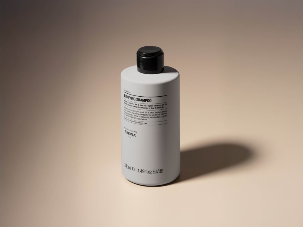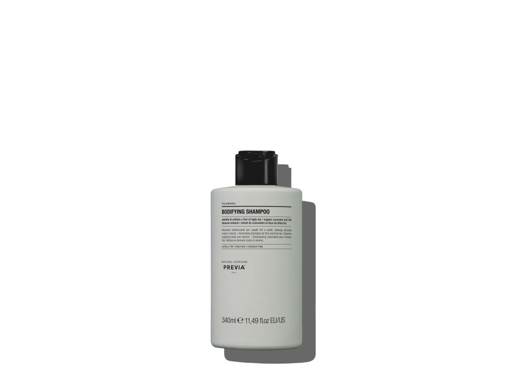 BODIFYING SHAMPOO od italské značky PREVIA Italy představuje luxusní objemovou péči specificky navrženou pro potřeby jemných, zplihlých a křehkých vlasů. Jeho vyvážené bio-organické složení šetrně odstraňuje nečistoty a zároveň posiluje vlasovou strukturu, čímž vytváří okamžitý efekt hustších a bohatších vlasů. Šampon hydratuje vlasové vlákno do hloubky bez rizika zatížení, díky čemuž zůstávají vlasy po umytí nadýchané, poddajné a drží si svůj přirozený objem po výrazně delší dobu.
