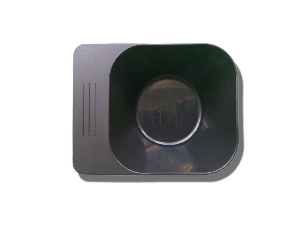 Její ergonomický tvar umožňuje stabilní postavení na pracovní ploše, zatímco protiskluzová základna zajišťuje, že miska drží pevně na místě i během aktivní práce. Na vnitřní straně se nachází praktická měrka, díky které snadno odměříš potřebné množství barvy nebo směsi. Rozšířená boční hrana poskytuje dostatek místa pro pohodlné odložení štětce a zároveň slouží jako opěrná plocha, která usnadňuje manipulaci.