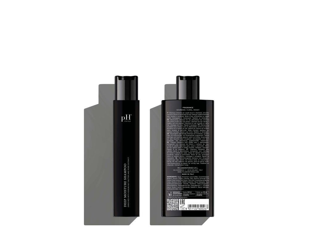 Hydratační zázrak pro suché a poškozené vlasy. DEEP MOISTURE SHAMPOO od pH Laboratories přináší luxusní péči díky máslu z ořechů kokum a extraktu z růže. Vlasy regeneruje, zjemňuje a navrací jim zdravý vzhled i pružnost. Navíc je zahalí do smyslné květinově-dřevité vůně s tóny vanilky a růží, která potěší vaše smysly při každém mytí.
