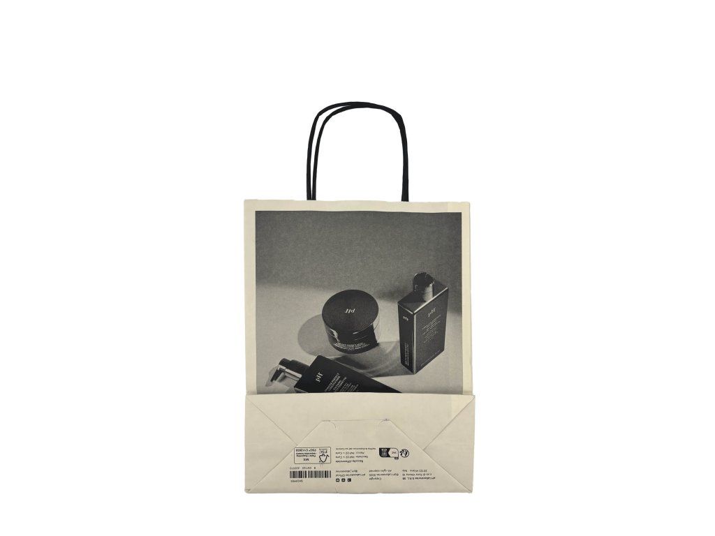 Papírová taška pH Laboratories ECO SHOPPER v rozměru 18 × 24 × 8 cm je ideálním doplňkem pro kadeřnické salony, které chtějí podtrhnout svou orientaci na detail. Je vyrobena z recyklovaného papíru, čímž snižuje dopad na životní prostředí, aniž by slevovala z luxusního vzhledu. Čisté linie, ikonické černé logo a pevná kroucená šňůra dělají z každého prodeje produktu výjimečný okamžik.