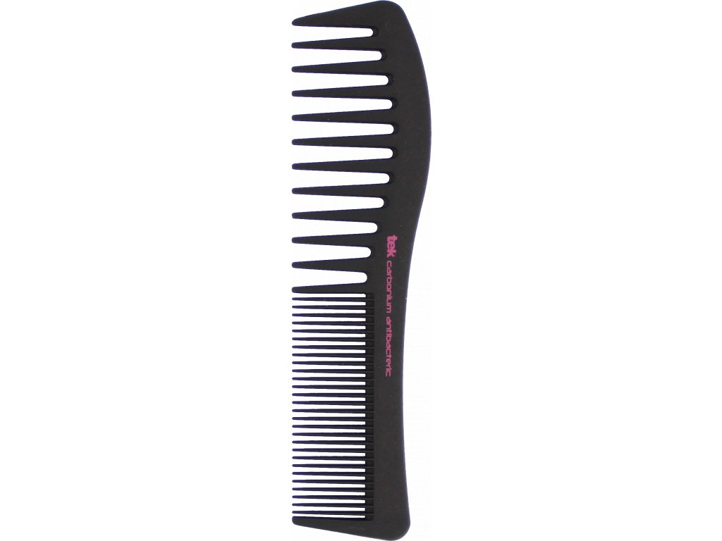 Rozčesávací a stříhací karbonový hřeben se široko odsazenými a jemnějšími zuby z antibakteriální čisté uhlíkové slitiny. Díky dokonalému vyhlazení zubů, jsou hřebeny vhodné na rozčesávání zacuchaných suchých i mokrých vlasů. Tento hřeben je o rozměrech 19.2 x 5 cm.