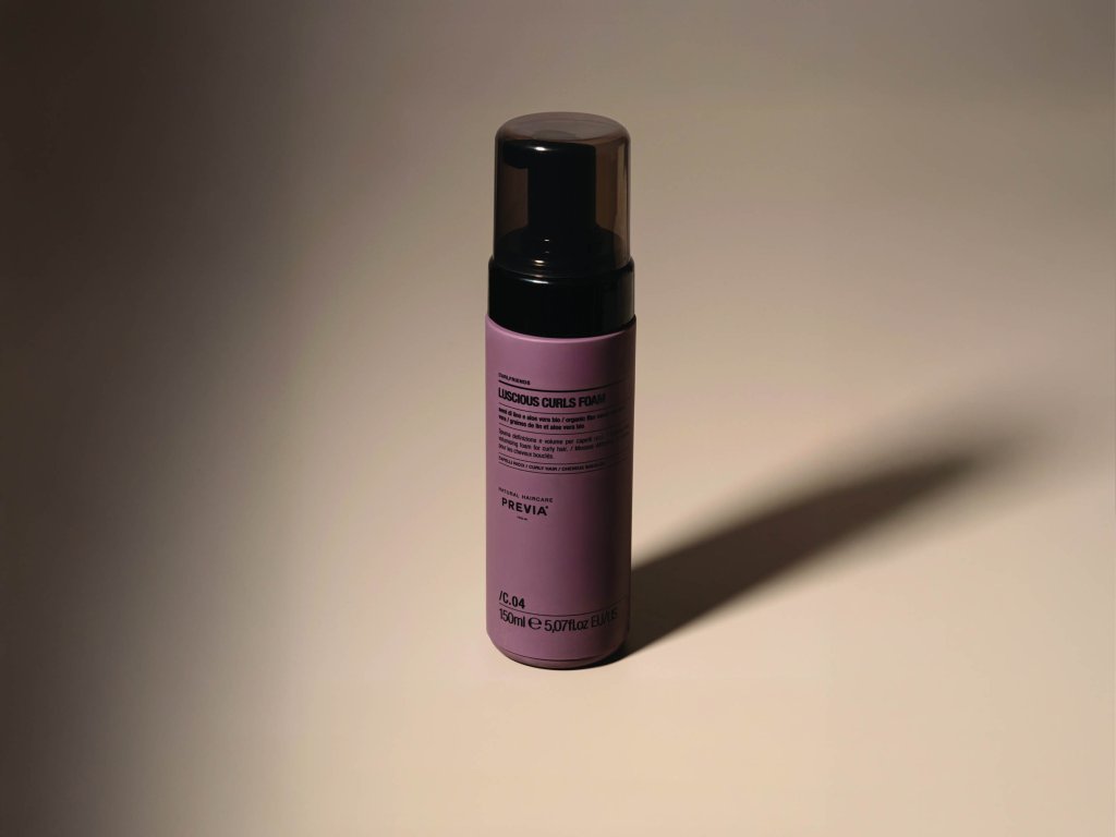 LUSCIOUS CURLS FOAM od italské značky PREVIA Haircare je luxusní modelační pěna navržená pro precizní definici vlnitých a kudrnatých vlasů. Její lehké bio-organické složení poskytuje vlasům střední fixaci, dodává jim požadovaný tvar a objem, přičemž plně zachovává jejich přirozený pohyb. Pěna efektivně uzamyká hydrataci uvnitř vlasového vlákna, zabraňuje nepříjemnému elektrizování a chrání účes před negativními vlivy vlhkosti. Po aplikaci jsou kudrliny pružné, sametově hebké na dotek a získávají oslnivý lesk, to vše bez pocitu slepení, zatížení nebo nežádoucí ztuhlosti.