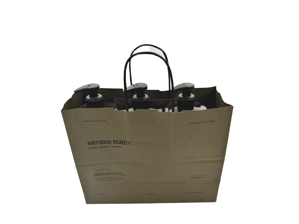 Virtuous Beauty ECO SHOPPER 28 x 22 x 11 cm od Previa Italia představuje dokonalou rovnováhu mezi praktičností a sofistikovaným minimalismem. Díky svým velkorysým rozměrům a zesílené konstrukci je navržena tak, aby bezpečně pojala i těžká profesionální balení, což z ní dělá ideálního partnera pro salony i náročné koncové klienty.