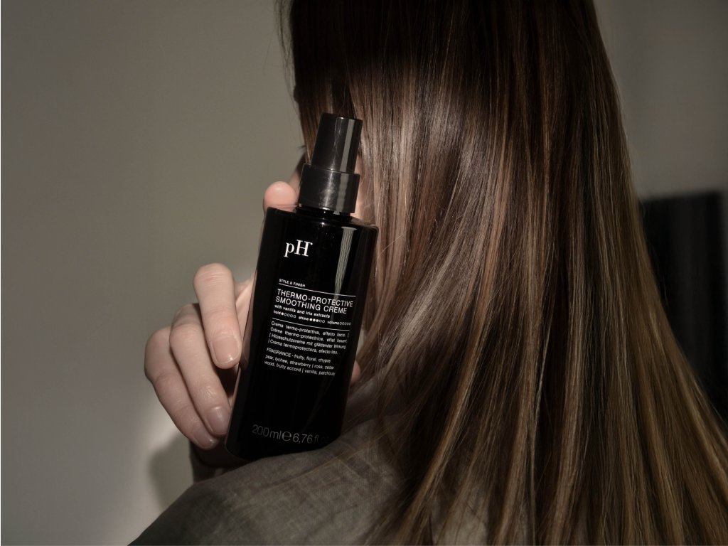THERMO-PROTECTIVE SMOOTHING CREME od pH Laboratories je multifunkční termoochrana, uhlazující a hydratační péče v jednom. Ochrání vlasy před vysokou teplotou, usnadní styling, zamezí krepatění a zanechá vlasy lesklé, jemné a provoněné – každý den, v každém ročním období.