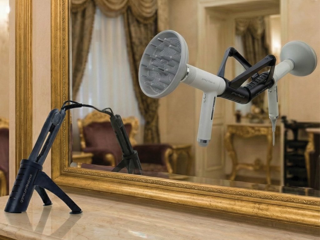 GA.MA Professional univerzální stojan představuje inteligentní řešení pro každého kadeřníka, který bojuje s nedostatkem místa nebo nepořádkem na pracovním stolku. Tento stojan byl vyvinut tak, aby zajistil maximální bezpečí pro vaši drahou techniku. Jeho největší předností je variabilita upevnění. Díky nadstandardně silným přísavkám jej nemusíte instalovat pouze horizontálně na desku, ale můžete jej připevnit i vertikálně přímo na zrcadlo. Tato inovace vám umožní mít fén či žehličku okamžitě k dispozici v ideální výšce, zatímco pracovní plocha zůstává volná pro stylingové přípravky a hřebeny.