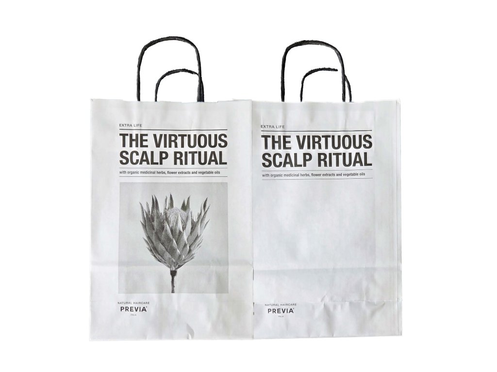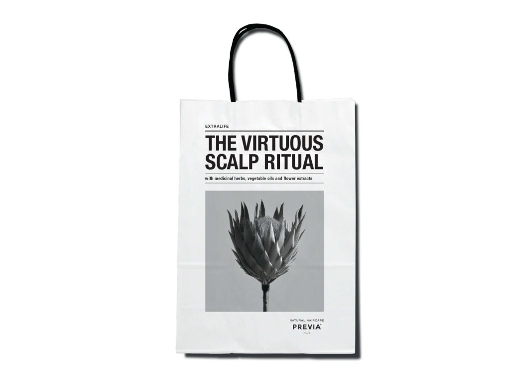 Luxusní papírová taška VIRTUOUS SCALP RITUAL od Previa Haircare je ideálním řešením pro stylové a prémiové balení vašich oblíbených produktů. Perfektně se hodí pro profesionální salony, exkluzivní butiky i pro každého, kdo chce při předávání dárku vytvořit skutečně nezapomenutelný dojem. Vyrobena z kvalitního, pevného papíru z udržitelných zdrojů, zaručuje odolnost i při přenášení těžších produktů. Její sofistikovaný design s motivem kolekce The Virtuous Scalp Ritual odráží hodnoty značky – přírodní péče, elegance a udržitelnost.
