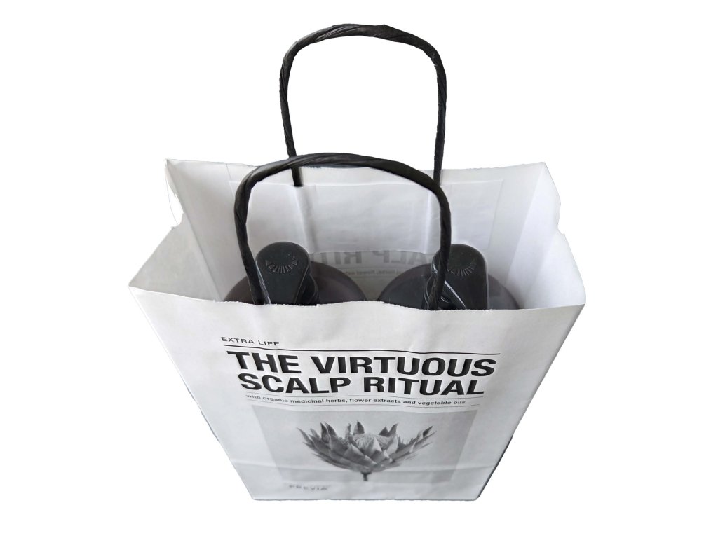 Elegantní a odolná taška z kvalitního papíru z udržitelných zdrojů je ideální pro prémiové dárkové balení i profesionální použití v salonech. S rozměry 18 × 26 × 8 cm a pohodlnými kroucenými držadly nabízí dostatek prostoru pro vaše oblíbené produkty, zatímco její design s motivem kolekce The Virtuous Scalp Ritual podtrhuje eleganci a hodnoty přírodní péče.