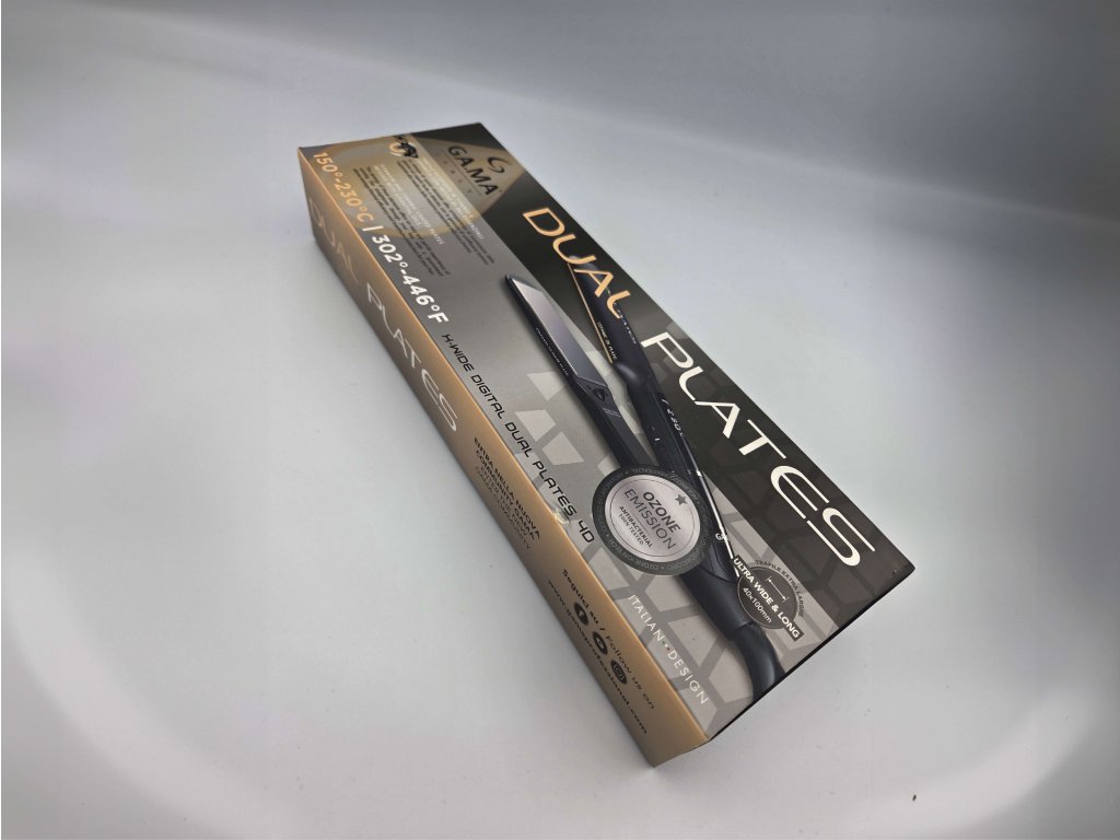 Inovativní žehlička GA.MA DUAL PLATES 4D na vlasy s dvojitými topnými deskami pro dokonalý styling bez poškození. Titanová deska zajistí rovnoměrné rozložení tepla, zatímco keramická deska s infuzí esenciálních olejů chrání vlasy a dodává jim hydrataci. Extra široké oscilující desky (10 × 4 cm) zajišťují hladký skluz a rychlé narovnání i těch nejhustších vlasů. Díky trojnásobné emisi iontů a ozónu budou vaše vlasy lesklé, hladké a bez krepatění. Nastavitelná teplota 150°C – 230°C, LCD displej a automatické vypnutí po 60 minutách zaručují snadné a bezpečné použití.